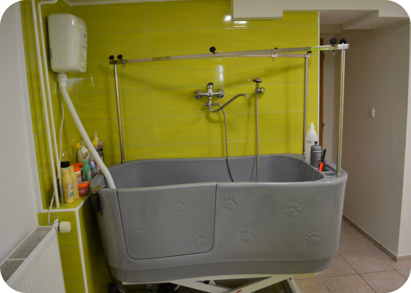 Pes je předem vykoupán - cena od 450,-Kč (zahrnuje i následné vysušení),